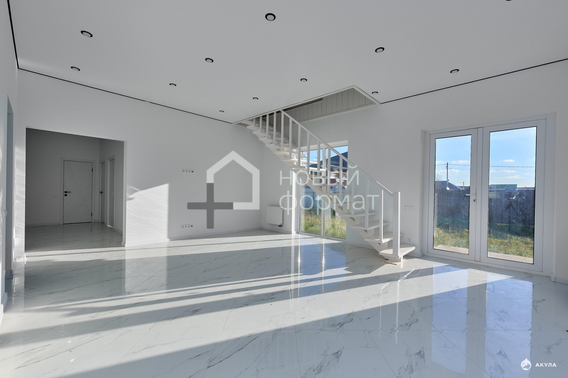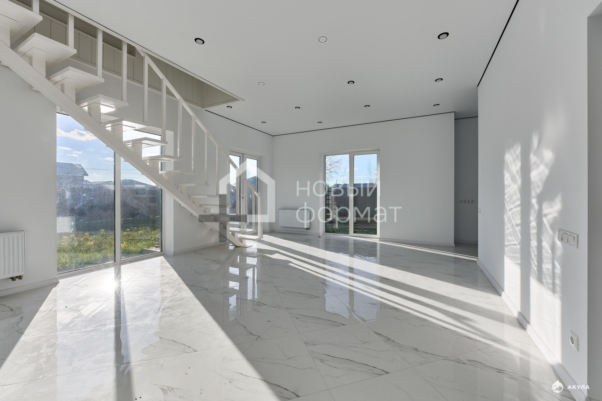 Все окна в доме панорамные (остекление в пол), что обеспечивает дом обилием света и светлые тона отделки визуально увеличивают пространство. На втором этаже можно устроить бильярдную или кабинет